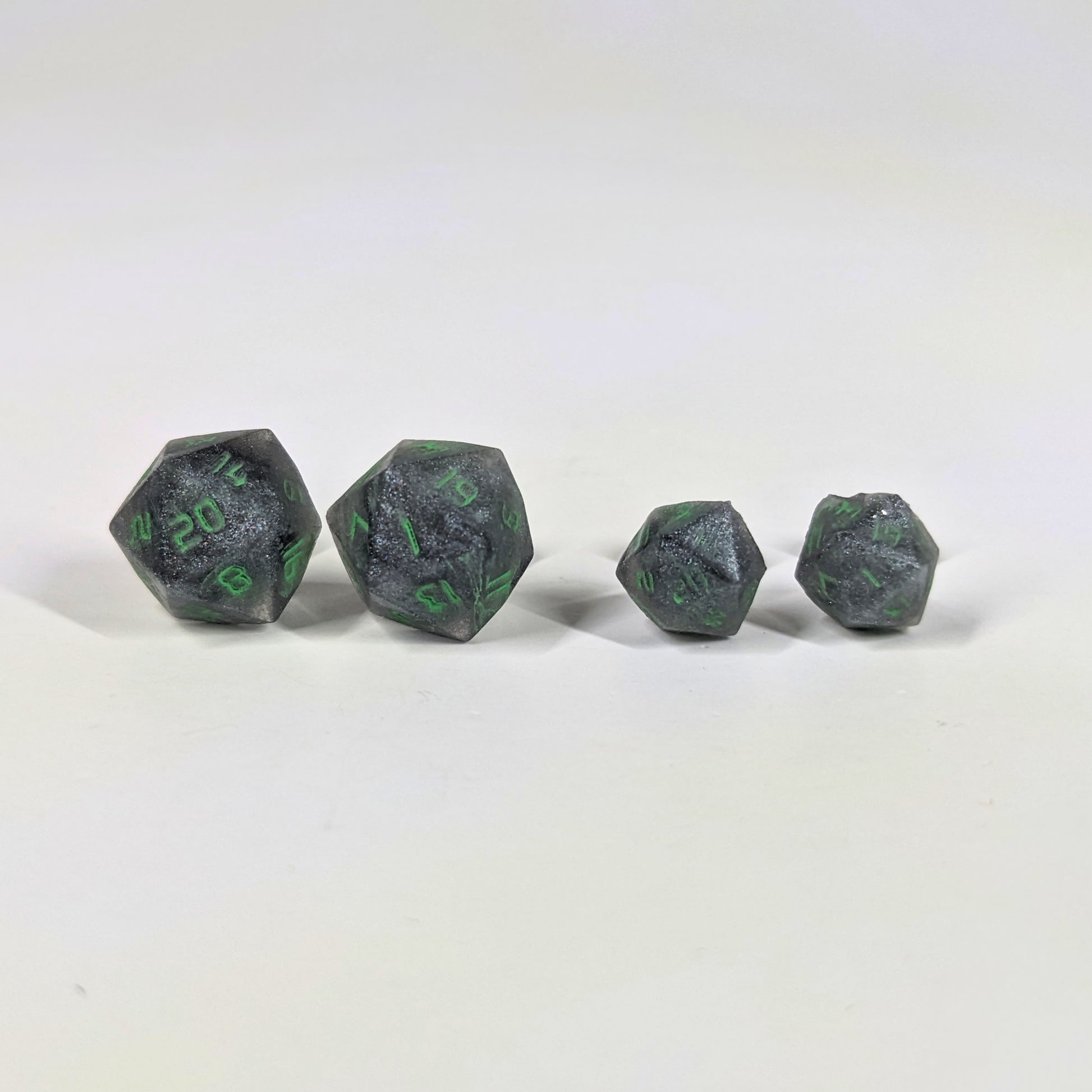 Each pair contains two halves of a d20 centering the 1 and 20 face