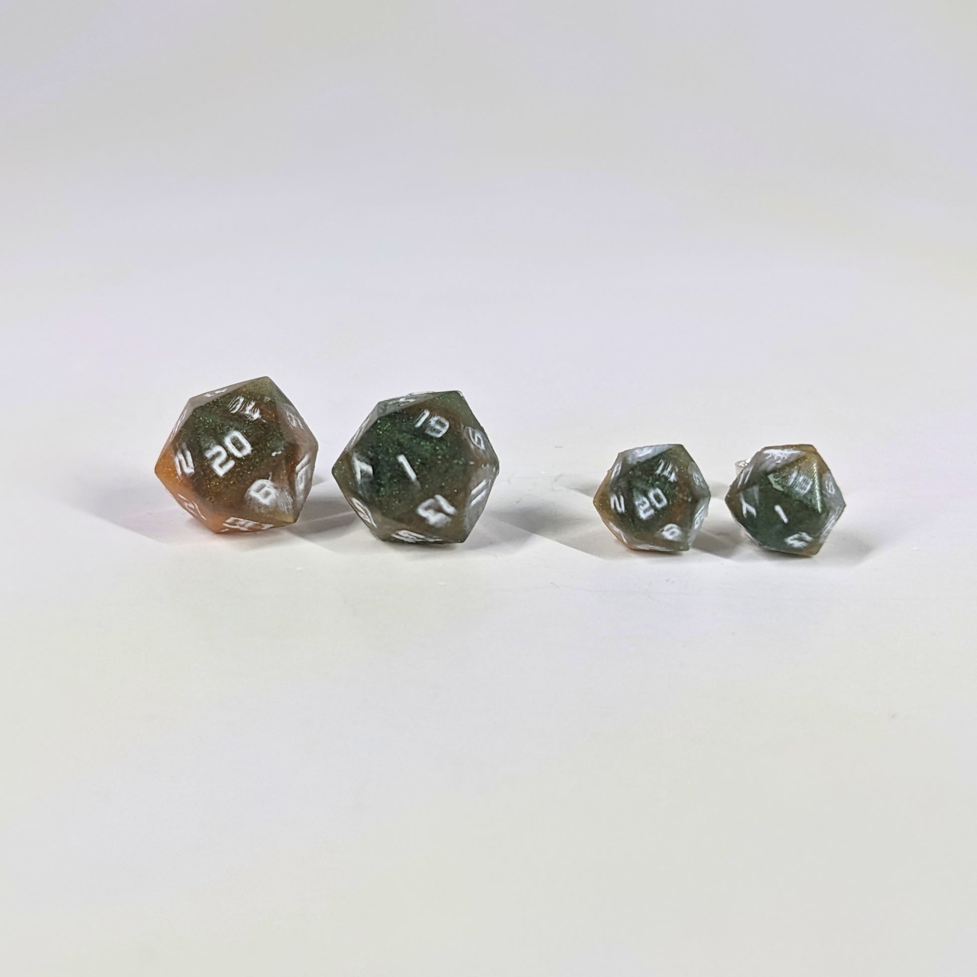 Each pair contains two halves of a d20 centering the 1 and 20 face