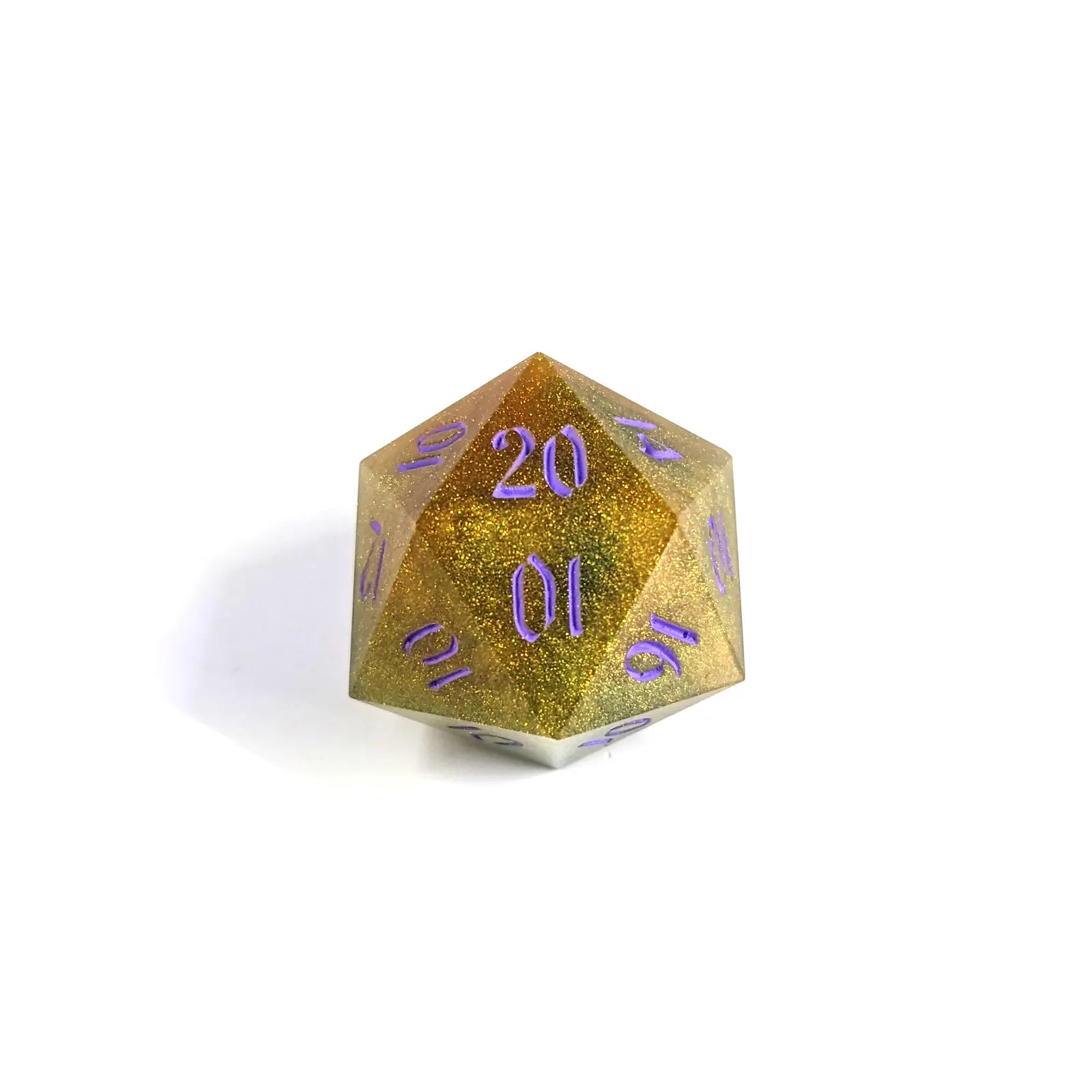Royal purple wrapped in shimmering gold, these dice carry the weight of command. Roll with confidence worthy of a crown.