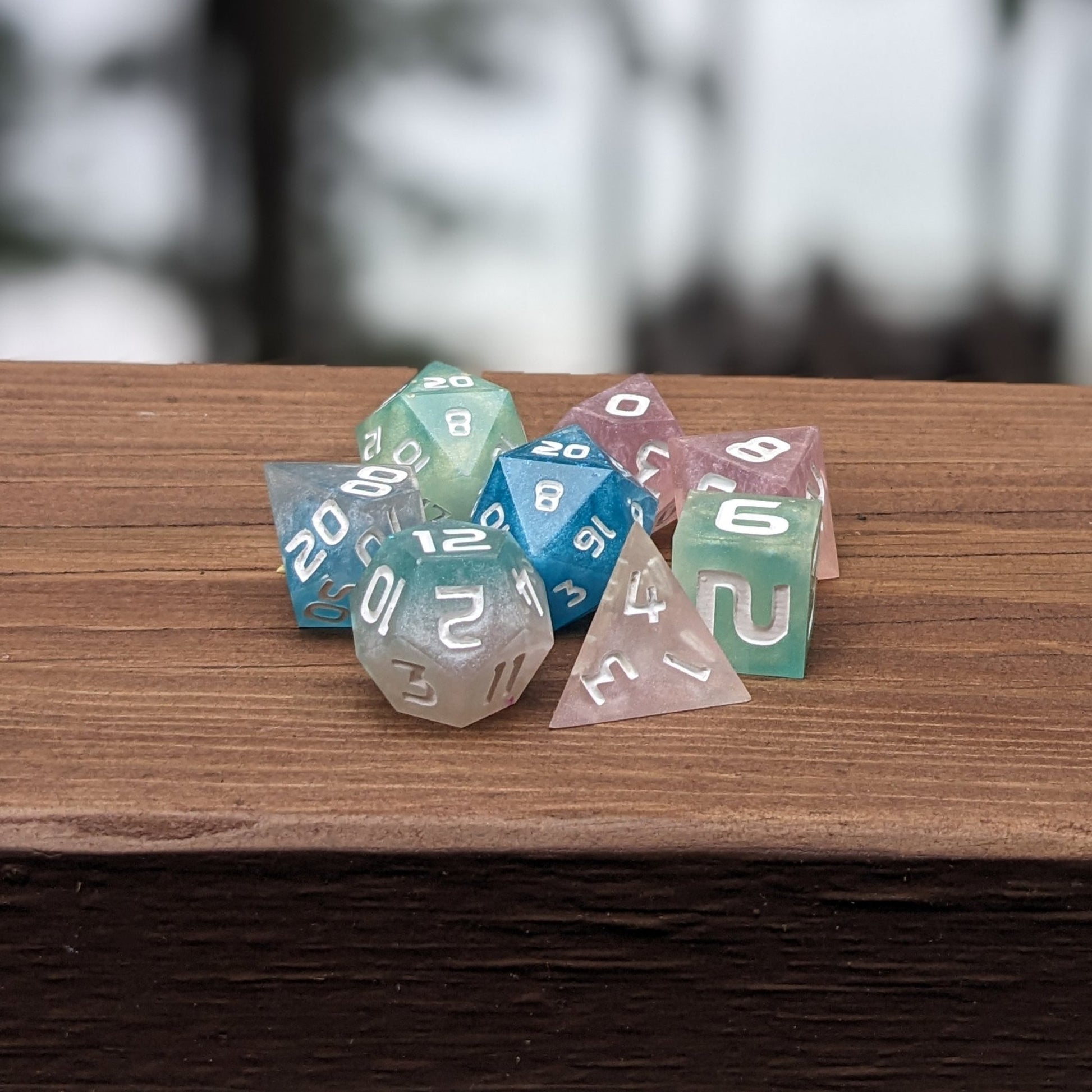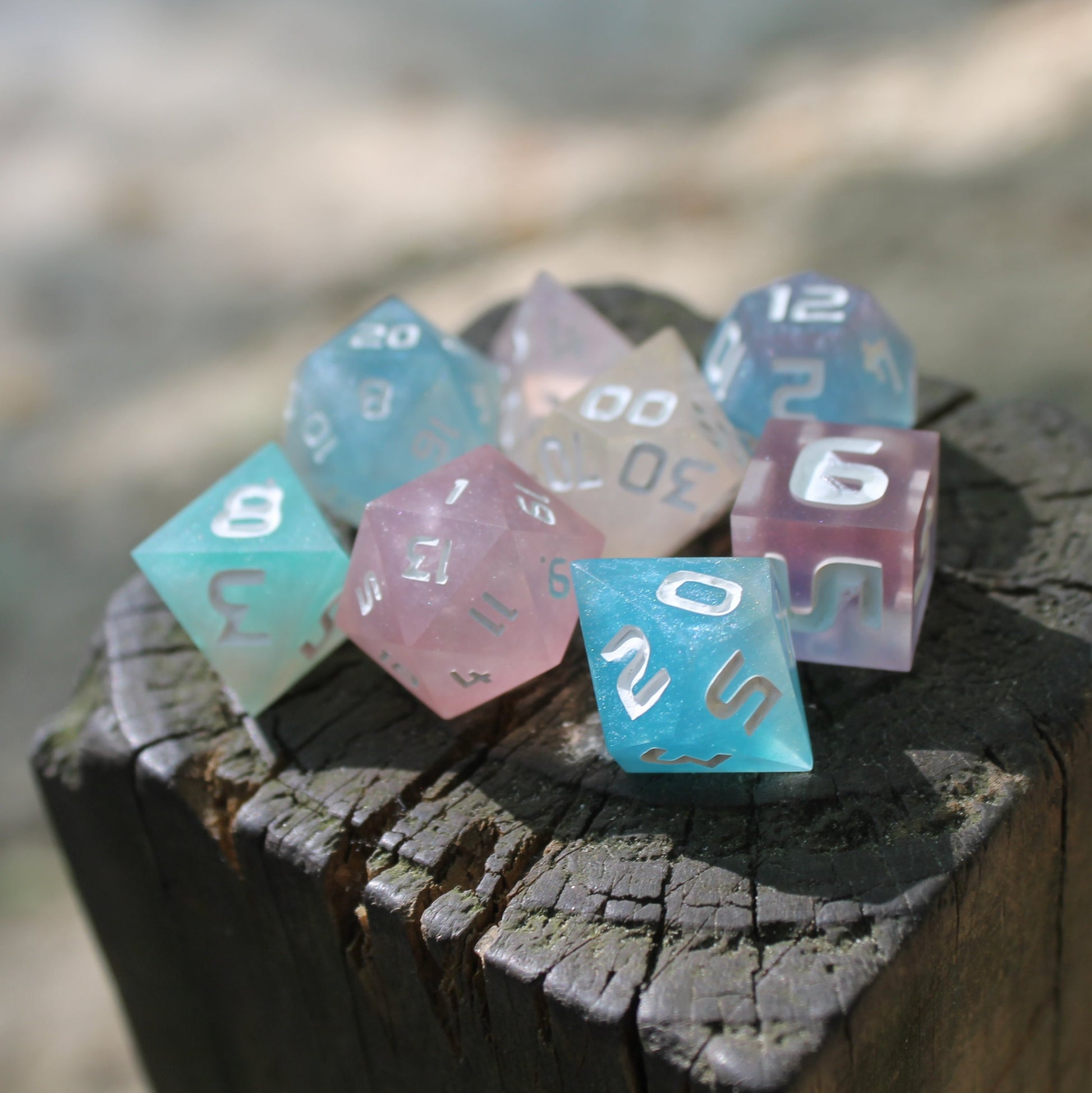 - Opaque white numbers that let the sparkles of the dice shine