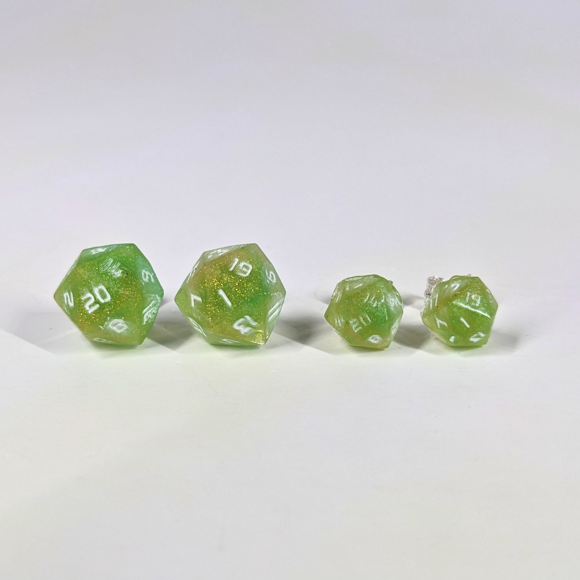 Each pair contains two halves of a d20 centering the 1 and 20 face