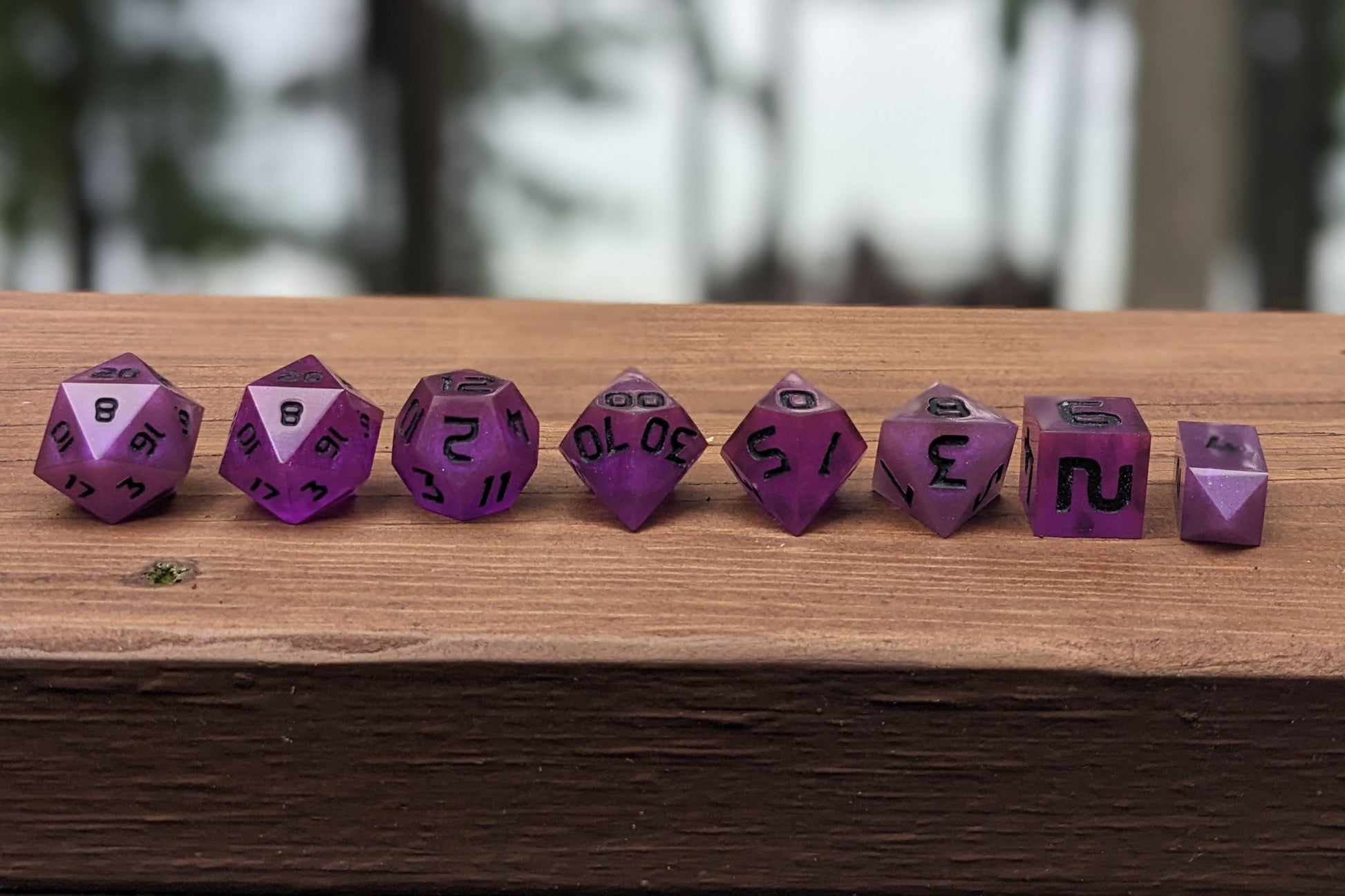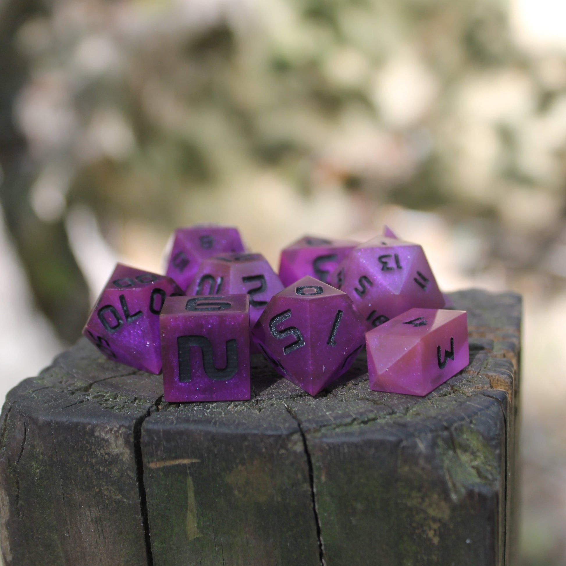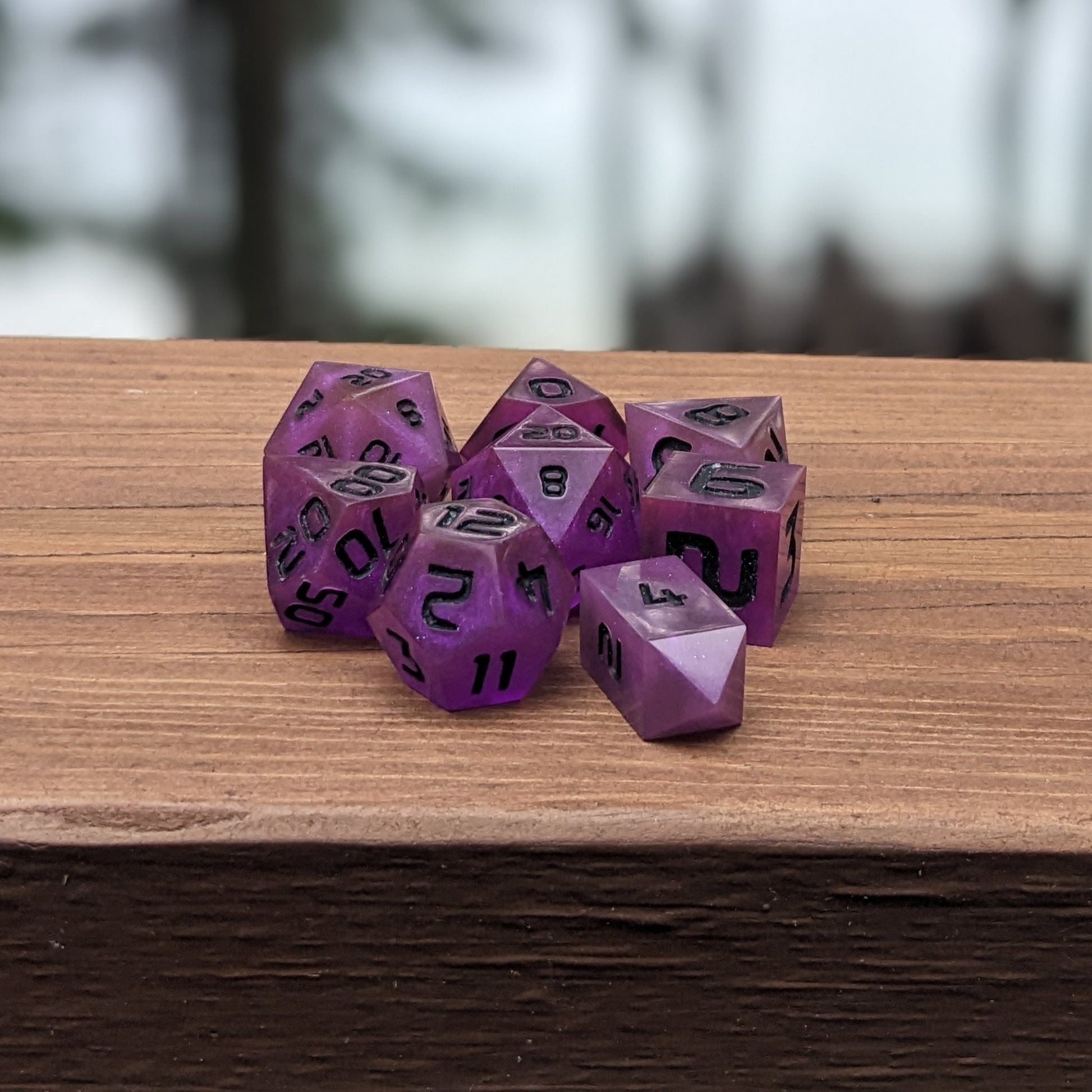 - Deep purple dice inspired by amethyst